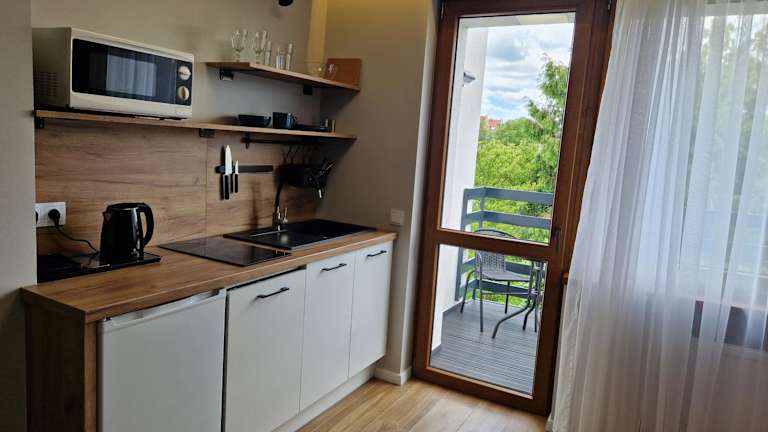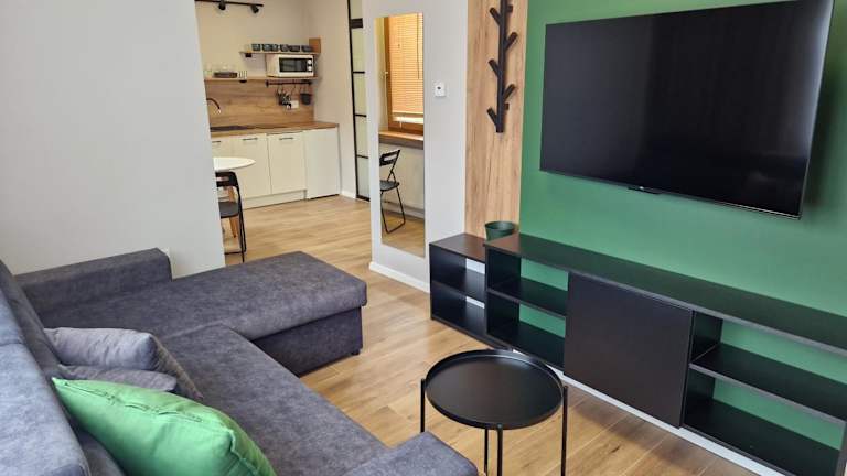 Apartamenty-Dom Pod Sosną bietet Übernachtungsmöglichkeiten mit einem Flachbild-TV und kostenlosem Wifi. Die Unterkunft besticht durch einen Garten und eine Terrasse, die zu einem gemütlichen Verweilen einladen.