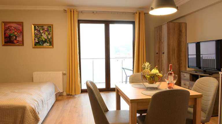 Apartamenty Gaja bietet eine heimelige Atmosphäre mit modernen Annehmlichkeiten. Es sind Nichtraucherzimmer vorhanden, die mit einem Balkon und Stadtblick ausgestattet sind. Die Unterkunft ist familienfreundlich und erlaubt keine Junggesellenabschiede oder ähnliche Feiern. Es sind zudem keine Haustiere gestattet. Ein Privatparkplatz ist vor Ort vorhanden.