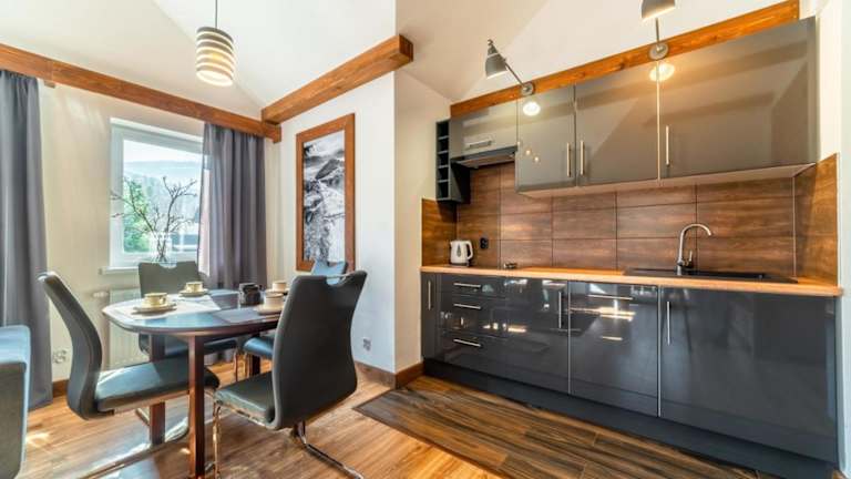 Die Unterkunft befindet sich in Karpacz mit Blick auf den Fluss und in der Nähe von Möglichkeiten zum Skifahren. Der Themenpark Western City liegt 2,9 km von der Unterkunft entfernt und die Wang Kirche ist 6 km weit weg. Der nächstgelegene Flughafen ist der Flughafen Nikolaus-Kopernikus Breslau, welcher 112 km von der Unterkunft entfernt ist.