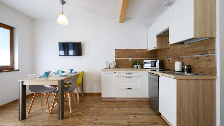In den Apartments im Apartamenty Ola II haben Sie die Möglichkeit, Ihre eigenen Mahlzeiten zuzubereiten, da jede Küchenzeile mit einem Kühlschrank und Küchenutensilien ausgestattet ist. Wenn Sie jedoch keine Lust zum Kochen haben, finden Sie in der Umgebung des Hotels eine Vielzahl von Restaurants und Cafés, in denen Sie lokale Spezialitäten und internationale Küche genießen können. Lassen Sie sich von den kulinarischen Angeboten verwöhnen und entdecken Sie die Vielfalt der Küche in Darłówko.