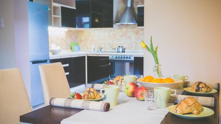 Ein köstliches Frühstück wird täglich im Nebengebäude serviert. Zudem profitieren Gäste von einem tschechischen Restaurant im Apartmentgebäude.