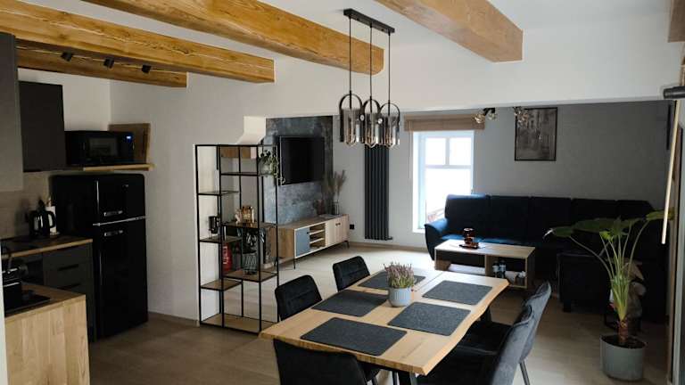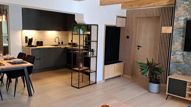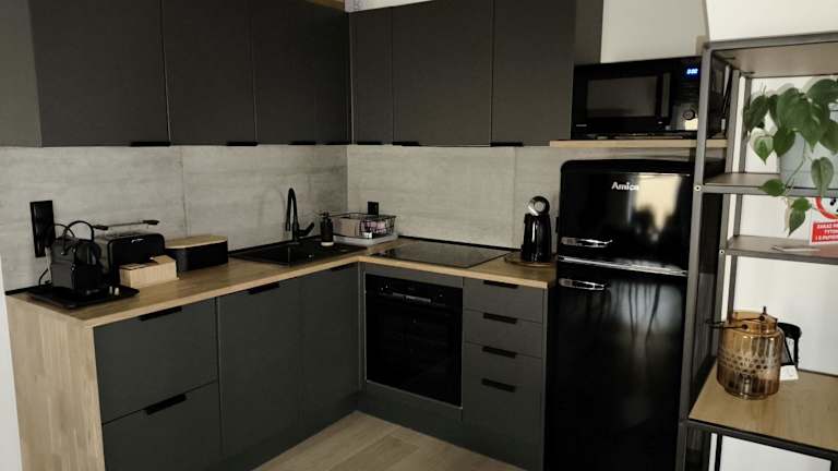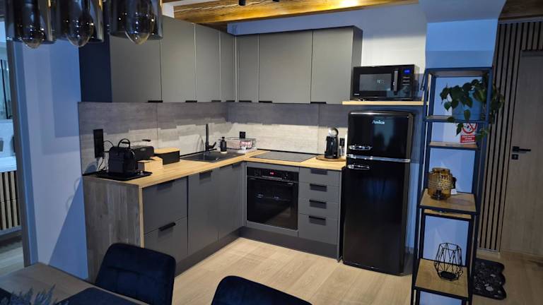 Die Ferienwohnung umfasst ein Schlafzimmer, ein Wohnzimmer, eine voll ausgestattete Küche mit Kühlschrank und Kaffeemaschine sowie ein Badezimmer mit Dusche und kostenlosen Pflegeprodukten. Handtücher und Bettwäsche werden bereitgestellt.