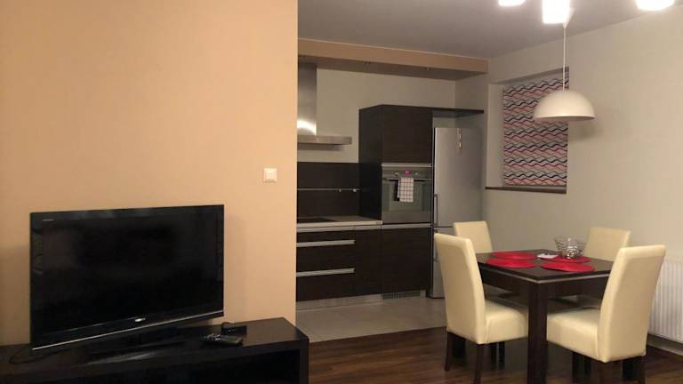Das Apartamenty Tychy Bielska 145 bietet eine gemütliche Unterkunft in Form einer Ferienwohnung. Sie umfasst ein Schlafzimmer, ein Wohnzimmer mit Flachbild-TV und eine voll ausgestattete Küche. Die Terrasse lädt zum Entspannen ein. Ein Privatparkplatz ist ebenfalls verfügbar.