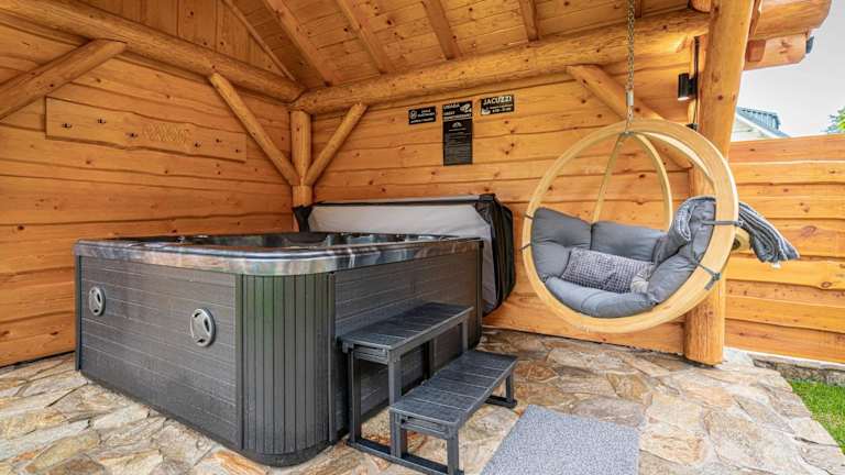 Apartamenty w Lipowskiej Chacie - jacuzzi i sauna bietet eine gemütliche Atmosphäre mit einer Terrasse und einem Garten, wo Gäste entspannen können. Die Unterkunft ist Nichtraucherzone und bietet eine Sauna sowie einen Whirlpool für Erholungssuchende.