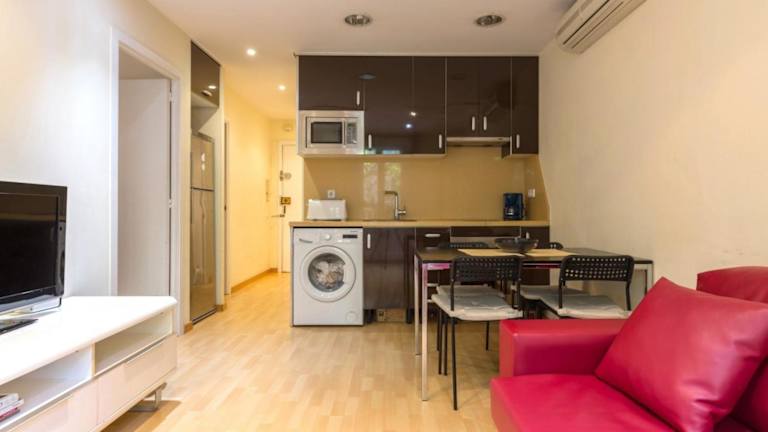 Das klimatisierte Apartment im ApartEasy - Sant Antoni Market bietet 2 Schlafzimmer, ein Wohnzimmer, eine voll ausgestattete Küche und ein Badezimmer. Mit seinem Balkon bietet das Apartment zusätzlichen Platz zum Entspannen und Genießen der Aussicht. Die Küche ist mit einem Kühlschrank und einer Kaffeemaschine ausgestattet, um Ihnen die Zubereitung von Mahlzeiten zu erleichtern. Handtücher und Bettwäsche werden gestellt, so dass Sie sich um nichts kümmern müssen.