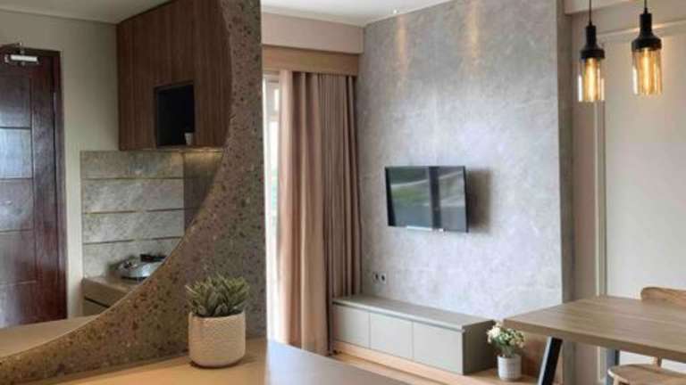 Apartemen Gateway Pasteur Bandung 2 BR Daymentroom R32 bietet eine heimelige Ferienwohnung mit einem Balkon und einer Terrasse, die eine beeindruckende Aussicht auf die Berge und die Stadt gewährleistet. Die Unterkunft verfügt über einen Aussenpool, einen Garten und eine Bar, was den Aufenthalt bereichert.