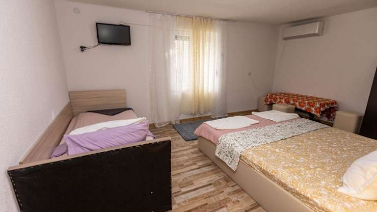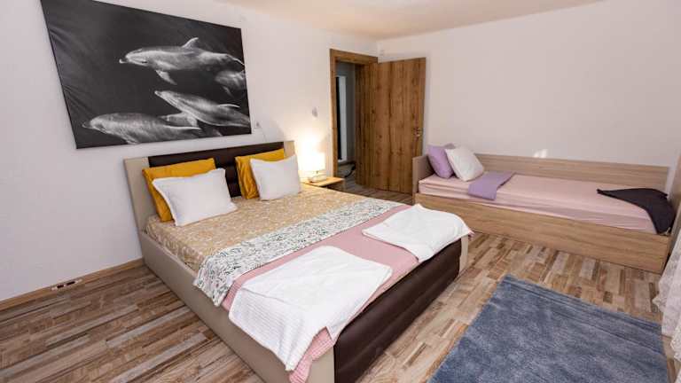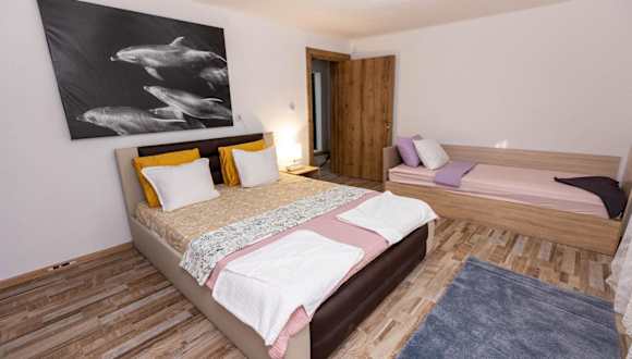 Das Privatzimmer verfügt über zwei Schlafzimmer und bietet modernen Komfort mit einem Flachbild-TV, Satellitenkanälen sowie einer gut ausgestatteten Küche, die mit einem Kühlschrank und einem Ofen ausgestattet ist. Zudem gibt es ein Badezimmer mit Dusche und zwei separate Toiletten. Handtücher und Bettwäsche werden zur Verfügung gestellt. Die Gäste können auch einen Kinderspielplatz nutzen.