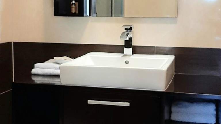 Die Unterkunft besteht aus einem Schlafzimmer, einem Wohnzimmer sowie einem Badezimmer mit Badewanne oder Dusche und bietet Handtücher und Bettwäsche.