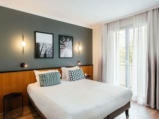 Die Zimmer sind mit einem Doppelbett, einer Klimaanlage und Heizung ausgestattet. Viele Zimmer verfügen über einen Balkon oder eine Terrasse. Zur weiteren Ausstattung gehören ein Kühlschrank, Herd, Mikrowelle, Tee-/Kaffeemaschine, Geschirrspüler, ein Safe, ein Schreibtisch, ein TV-Gerät und kostenfreies Wifi. Die Badezimmer sind mit einer Badewanne und einem Haartrockner ausgestattet. Zudem sind rollstuhlgerechte Zimmer buchbar.