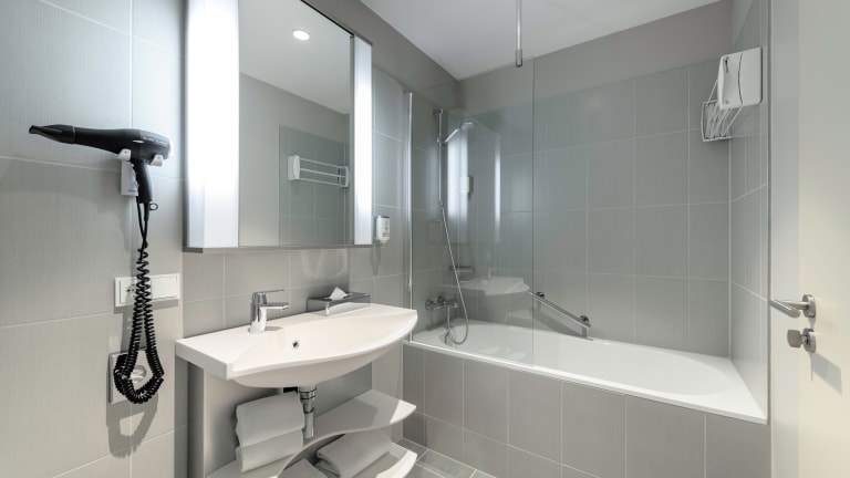 Das Aparthotel Adagio Frankfurt City Messe mit seinen 172 Serviced Apartments erstreckt sich über mehrere Etagen des Westend Gate Tower gegenüber der Frankfurter Messe. Von den Zimmern aus bietet sich, je nach Seite, ein spektakulärer Ausblick auf die Frankfurter Skyline oder den nahe gelegenen Taunus. Starten Sie mit einem leckeren Frühstück in den Tag, das Sie zur Übernachtung buchen können (20€ pro Person und Nacht). Die Frankfurter Innenstadt und der Bahnhof sind mit der Straßenbahn schnell erreicht. Eine Haltestelle befindet sich direkt vor dem Hotel. Die Nutzung des WLAN ist im gesamten Hotel inklusive.