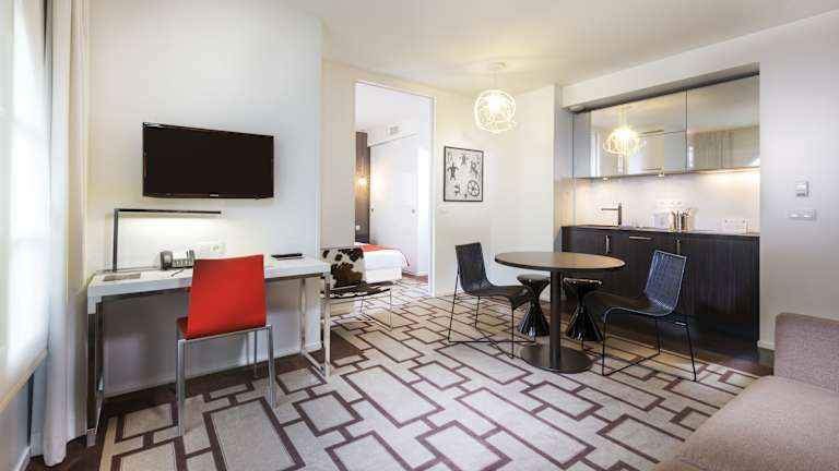 Die Unterkünfte sind mit einer Klimaanlage, einer individuell regelbaren Heizung, einem Balkon oder einer Terrasse ausgestattet. Zimmer verfügen über Teppichböden, ein Doppelbett, ein Sofabett und separate Schlafzimmer. Eine Kochnische mit Kühlschrank, Herd und Mikrowelle ist vorhanden, sowie ein Safe, Schreibtisch und TV. Badezimmer mit Dusche und Badewanne sind ebenso vorhanden. Das Hotel bietet auch rollstuhlgerechte Zimmer und Familienzimmer.