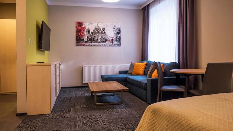 Das Aparthotel CENTRUM Gliwicka 18 bietet gemütliche Nichtraucherzimmer, die mit einem Flachbild-TV ausgestattet sind. Ein voll ausgestattetes eigenes Badezimmer mit Dusche und Haartrockner ist ebenfalls vorhanden. Die Unterkunft umfasst auch Familienzimmer und einen Gartenbereich.