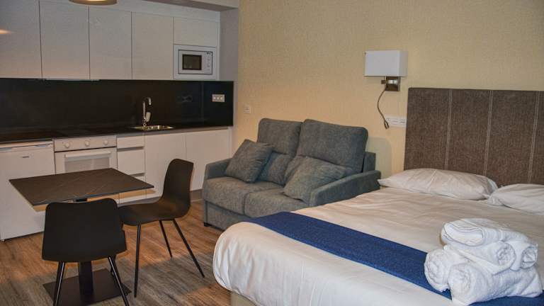 Das Aparthotel Essenzia de Castilla bietet eine ansprechende Unterkunft mit klimatisierten, schallisolierten Zimmern. Die Einrichtung ist modern und zweckmässig, mit einem Fokus auf Bequemlichkeit. Rauchen ist in der gesamten Unterkunft nicht gestattet, und es stehen Nichtraucherzimmer zur Verfügung. Die Rezeption ist rund um die Uhr besetzt und bietet einen kontaktlosen Check-in/Check-out.