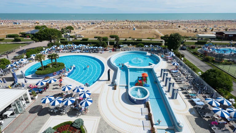 Das Aparthotel Imperial ist wie geschaffen für einen unvergesslichen Familienurlaub in Bibione. Drei großzügige Außenpools mit unterschiedlichen Tiefen bieten Erfrischung und Badespaß für Groß und Klein – von flachen Kinderbecken mit fantasievollen Wasserspielen bis hin zu Relax-Bereichen mit Hydromassage. Direkt vor dem Hotel erwartet Sie ein komplett neu gestalteter, privater Strandabschnitt: Großzügig platzierte Sonnenschirme mit XL-Liegen, elegante Gazebos mit Relaxsesseln, schattige Spielbereiche für Kinder und bequeme Holzstege – ideal auch für Kinderwagen. Für noch mehr Komfort: kostenlose Leihfahrräder mit Kindersitzen und Helmen, Baby- und Kinderbetreuung im Mini- und Babyclub, Animation für verschiedene Altersgruppen sowie ein komplett ausgestatteter Indoor-Spielbereich mit über 400 m² Spielfläche, Videospielen, Playstation und Leseecke. Zusätzliche Annehmlichkeiten wie Münzwaschmaschinen, Trockner, ein Fitnessbereich sowie ein rauchfreier Poolbereich mit Snackbar runden das Angebot ab – für entspannte Urlaubstage mit der ganzen Familie.