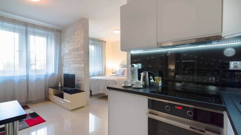 Die Zimmer im Aparthotel sind mit einer voll ausgestatteten Küche, einem Essbereich und einem Flachbild-TV ausgestattet. Jedes Zimmer beinhaltet ein eigenes Badezimmer mit Bidet, kostenlosen Pflegeprodukten und einem Haartrockner. Zur Ausstattung gehören zudem Kühlschrank, Geschirrspüler, Ofen, Kaffeemaschine und Wasserkocher.