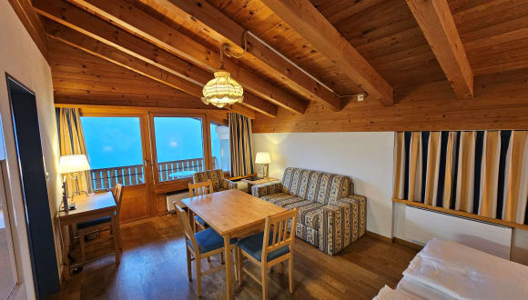 Das Aparthotel befindet sich im Bergdorf Wiesen auf einer Sonnenterrasse zwischen Davos und Lenzerheide. Ein-, Zweizimmer- und neu sogar Drei-Zimmer-Appartements und Familienzimmer (Doppelzimmer und Kinderzimmer mit Verbindungstüre). Alle allergenarm eingerichtet und für Nichtraucher. Im Restaurant geniessen Sie eine bekömmliche und schmackhafte Küche (auch vegetarisch). Das Muchetta ist der ideale Ausgangspunkt für Ausflüge und Sport un der Umgebung. Wintersport (Skifahren, Snowboarden, Skitouren, Rodeln oder Schneeschuhtouren), Golf oder Mountainbiken (Alps Epic Trail Davos). Der Wiesner und Landwasserviadukt (UNESCO Welterbe) sind gut erreichbar. Während den Sommerferien profitieren Sie vom Gästeprogramm der Destination Davos Klosters mit vielen Abenteuern und Aktivitäten. Kinderskischule in Wiesen für Kinder ab 4 Jahren. Davoser Skigebiete mit Postbus in 7 Minuten erreichbar. Kleiner aber feiner Wellnessbereich mit Sauna, Dampfbad und Kinderplantschbecken. Massagen im Hotel. Dank unserem Spielparadies im Dachstock des Haupthauses mit Softplayanlage, Lego- und Bücherecke und Bastelzimmer wird es den Kindern nie langweilig. Die Betreuung findet für Kinder ab 3 Jahren von 16 - 21h über die Festtage und den Sportwochen im Februar statt. Gerne beraten wir Sie persönlich. Bitte rufen Sie uns bei Fragen an oder schauen Sie auf www.aparthotel-davos.ch rein!
