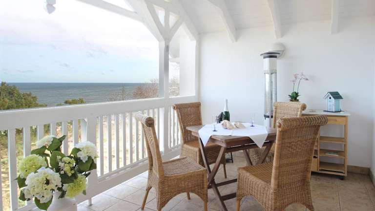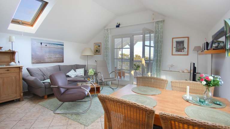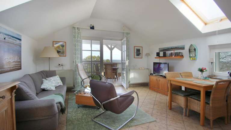 Die Ferienwohnung verfügt über 1 Schlafzimmer und ein Wohnzimmer mit TV. Eine gut ausgestattete Küche mit Kühlschrank und Geschirrspüler sowie ein Badezimmer mit Dusche sind ebenfalls vorhanden. Ein Balkon mit Meerblick sorgt für eine angenehme Atmosphäre.