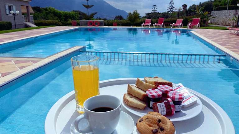 Das Frühstück wird täglich an der Poolbar serviert, die während des Tages auch Getränke und leichte Snacks anbietet. Zudem können die Gäste im Garten grillieren. Weitere Verpflegungsmöglichkeiten sind in der Nähe vorhanden.