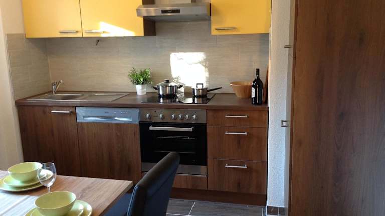 Die Zimmer sind ausgestattet mit einem Sitzbereich, einem Satelliten Flachbild-TV und einer voll ausgestatteten Küche. Diese beinhaltet einen Kühlschrank, Geschirrspüler, Ofen, Herdplatte, Kaffeemaschine sowie Wasserkocher. Des Weiteren befindet sich ein eigenes Badezimmer mit Dusche und Haartrockner in den Zimmern.
