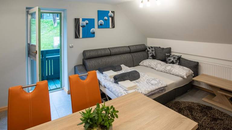 Das Apartment im Apartma Borovnica Rogla bietet alles, was Sie für einen komfortablen Aufenthalt benötigen. Mit einem Schlafzimmer, einem Wohnzimmer und einer voll ausgestatteten Küche haben Sie genügend Platz, um sich wie zu Hause zu fühlen. Der Balkon bietet einen atemberaubenden Blick auf die umliegende Berglandschaft. Handtücher und Bettwäsche werden gestellt, um Ihren Aufenthalt so angenehm wie möglich zu gestalten.