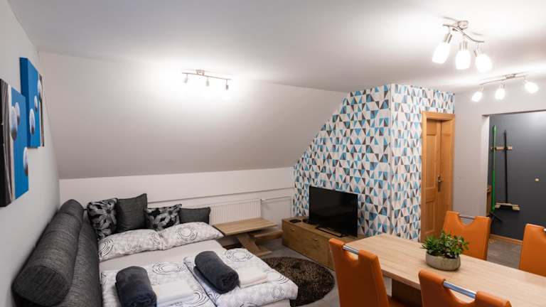 Erleben Sie einen entspannten Aufenthalt im Apartma Borovnica Rogla in Vitanje. Das Apartment bietet kostenfreies WLAN und einen Balkon mit herrlichem Bergblick. Genießen Sie die Annehmlichkeiten des Apartments, darunter ein Schlafzimmer, ein Wohnzimmer, eine voll ausgestattete Küche und ein Badezimmer. Das freundliche Personal steht Ihnen gerne zur Verfügung und der Fahrradverleih ermöglicht es Ihnen, die Umgebung zu erkunden. Der Flughafen Maribor Edvard Rusjan ist nur 52 km entfernt.