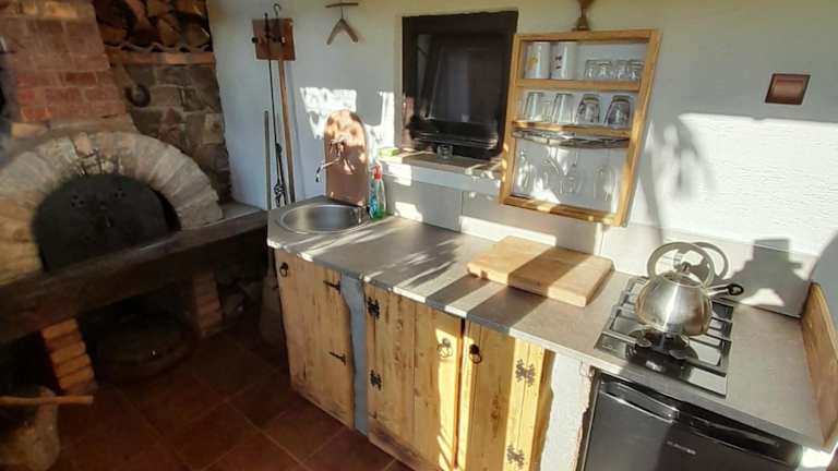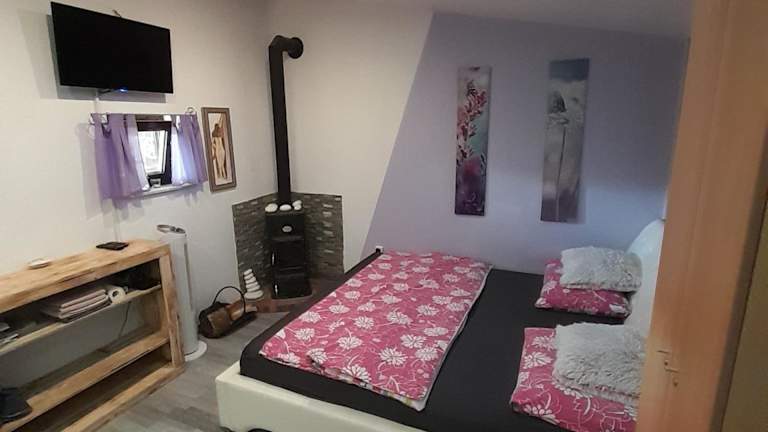Die Ferienwohnung umfasst 1 Schlafzimmer und ist mit einer Küche ausgestattet, die einen Kühlschrank und eine Herdplatte bietet. Ein Flachbild-TV, ein gemütlicher Sitzbereich sowie ein Badezimmer mit Dusche sind ebenfalls vorhanden. Handtücher und Bettwäsche werden bereitgestellt.