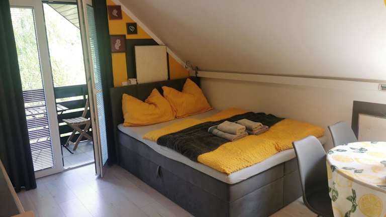 Die Ferienwohnung verfügt über ein Schlafzimmer und ein Badezimmer. Sie ist mit Bettwäsche, Handtüchern, einem Flachbild-TV mit Satellitenkanälen und einer voll ausgestatteten Küche ausgestattet. Zusätzlich steht ein Balkon zur Verfügung, der eine schöne Aussicht bietet.