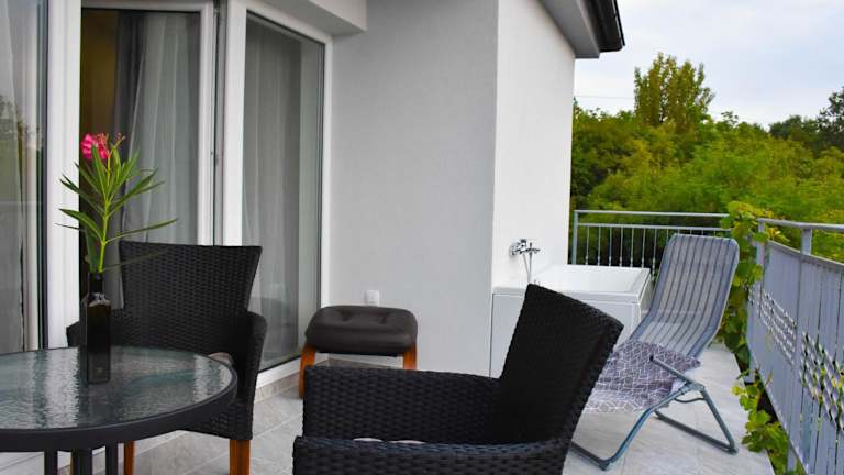 Apartma med oljkami - Portorož ist eine moderne Ferienwohnung, die sowohl eine Terrasse als auch einen Balkon bietet, ideal für entspannende Stunden im Freien. Die Unterkunft verfügt über kostenlose Privatparkmöglichkeiten und ist optimal für Gäste, die einen ruhigen Rückzugsort in der Nähe des Strandes suchen.