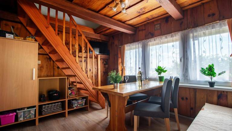 Das Ferienhaus besteht aus einem Schlafzimmer, einem Wohnzimmer und einer voll ausgestatteten Küche, die mit einem Kühlschrank und einer Kaffeemaschine ausgestattet ist. Es gibt ein Badezimmer mit Dusche und Haartrockner. Handtücher und Bettwäsche werden zur Verfügung gestellt.