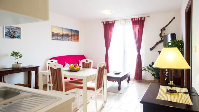 Jede Wohneinheit im Apartma Seča verfügt über ein eigenes Badezimmer mit Dusche, Klimaanlage, Flachbild-TV und Kühlschrank. Zudem gibt es einen Essbereich sowie eine gut ausgestattete Küche mit Ofen und Herdplatte.