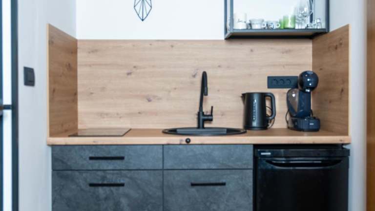 Die Unterkunft bietet einen Sitzbereich mit einem Flachbild-TV sowie ein eigenes Badezimmer mit kostenlosen Pflegeprodukten, einem Haartrockner und einer Dusche. In der Küche stehen ein Kühlschrank, eine Herdplatte, ein Toaster und eine Kaffeemaschine zur Verfügung. Schallisolierte Zimmer sind ebenfalls vorhanden.
