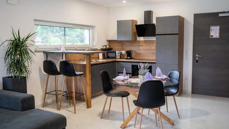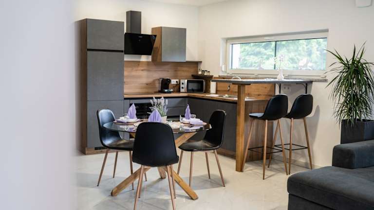 Die Wohneinheiten verfügen über eine voll ausgestattete Küche mit einem Esstisch sowie einen Flachbild-TV mit Satellitenkanälen. Jedes Zimmer enthält ein eigenes Badezimmer mit Dusche, Haartrockner und Hausschuhen. Die Küchen sind mit Kühlschrank, Geschirrspüler, Mikrowelle, Kaffeemaschine und Wasserkocher ausgestattet.