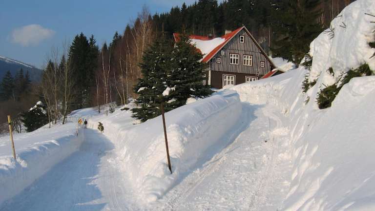 Die Unterkunft befindet sich in Špindlerův Mlýn, einer Gegend, die zahlreiche Möglichkeiten zum Skifahren und Velofahren bietet. Die Bushaltestelle Strážné liegt 13 km entfernt. Der nächstgelegene Flughafen ist der Flughafen Pardubice, 107 km von der Unterkunft entfernt.