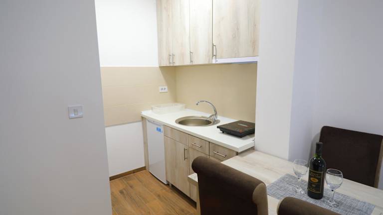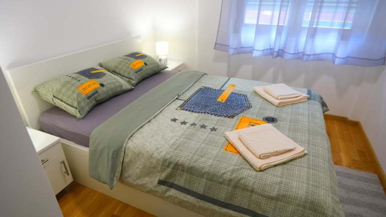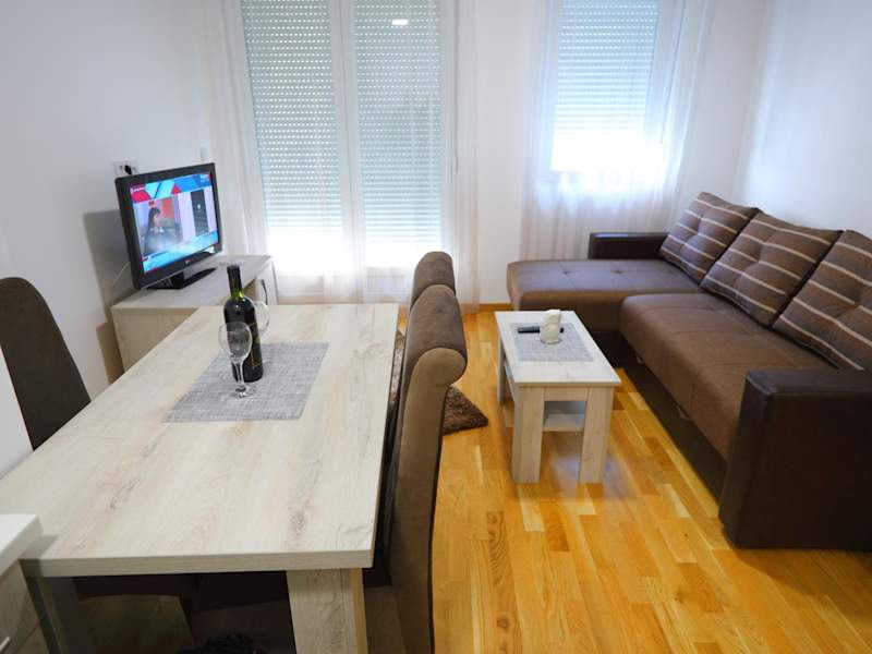 Das Apartman Alegro umfasst ein Schlafzimmer, ein Wohnzimmer mit einem Flachbild-TV und eine gut ausgestattete Küche mit Kühlschrank und Herdplatte. Zudem verfügt es über ein Badezimmer mit Dusche. Handtücher und Bettwäsche werden zur Verfügung gestellt. Die Terrasse bietet einen schönen Blick auf die Stadt.