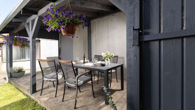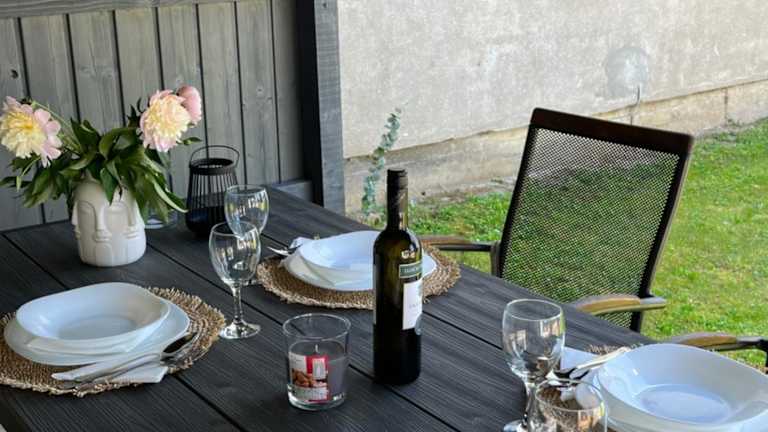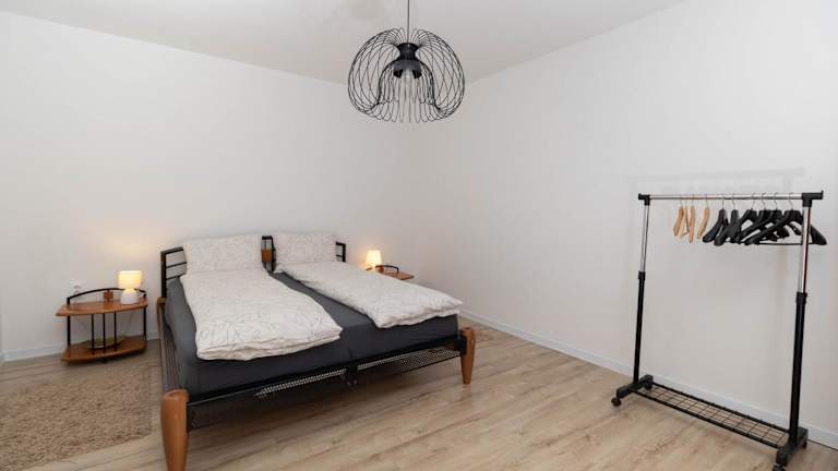 Die Ferienwohnung besteht aus einem Schlafzimmer, einem Wohnzimmer sowie einer voll ausgestatteten Küche mit Kühlschrank und Kaffeemaschine. Ein Badezimmer mit Dusche und Haartrockner ist ebenfalls vorhanden. Handtücher und Bettwäsche werden bereitgestellt. Die Unterkunft bietet zudem WLAN, Klimaanlage und Gartenmöbel.