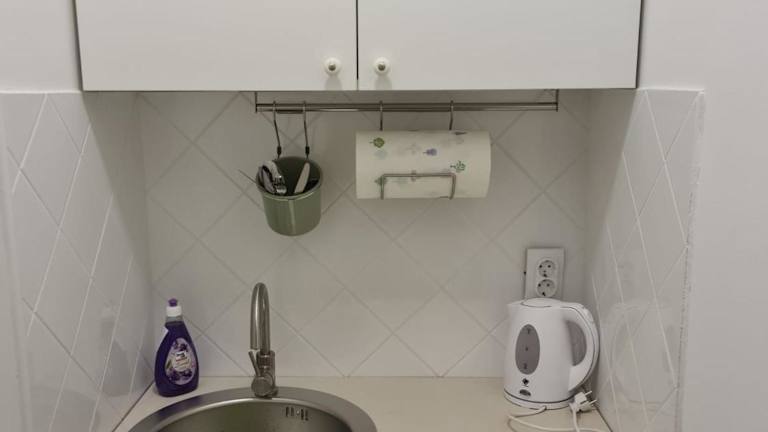 In der Unterkunft befindet sich eine voll ausgestattete Küche mit Kühlschrank, Herdplatte, Kaffeemaschine und Wasserkocher, ideal zur Selbstverpflegung.