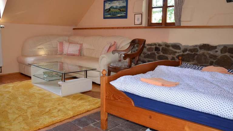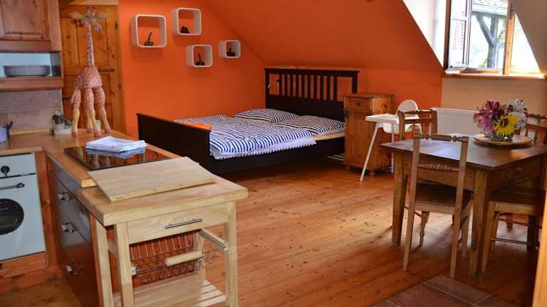 Die Unterkunft befindet sich in Český Rudolec, in der Nähe der historischen Altstadt von Telč, die nur 21 km entfernt ist. Auch das Schloss Telč ist in der gleichen Entfernung zu erreichen. Der nächstgelegene Flughafen, der Flughafen Budweis, liegt 81 km von der Unterkunft entfernt.