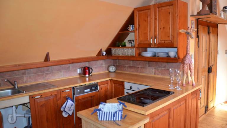 Die Ferienwohnung verfügt über zwei Schlafzimmer sowie eine Küchenzeile, die mit einem Kühlschrank, einem Geschirrspüler und einem Wasserkocher ausgestattet ist. Handtücher und Bettwäsche werden zur Verfügung gestellt.