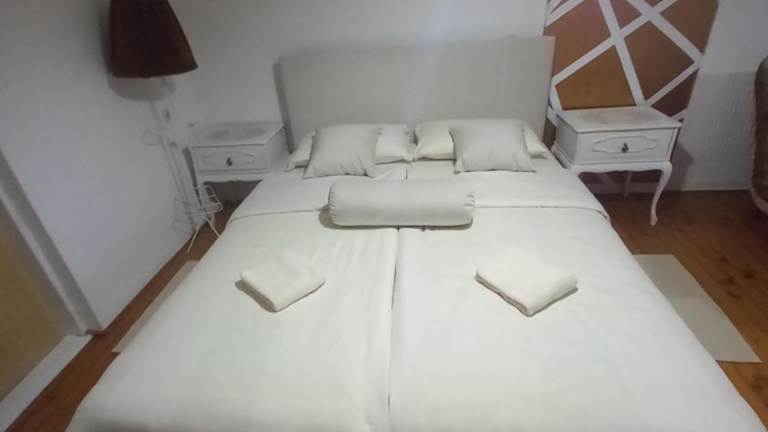 Die Ferienwohnung verfügt über ein Schlafzimmer, ein Wohnzimmer sowie eine voll ausgestattete Küche mit Kühlschrank und Wasserkocher. Ein Badezimmer mit Dusche und Haartrockner ist ebenfalls vorhanden. Handtücher und Bettwäsche werden bereitgestellt. Die Unterkunft ist klimatisiert und bietet kostenlose Parkiermöglichkeiten.