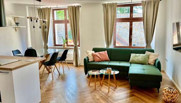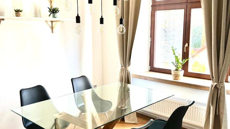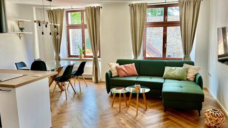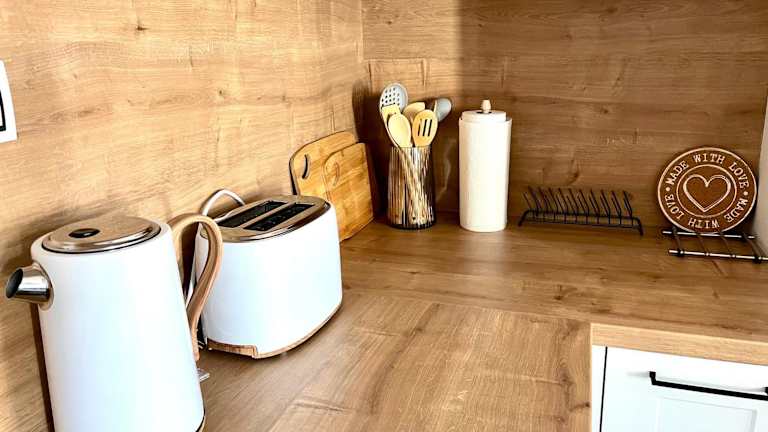 Die Ferienwohnung besteht aus einem Schlafzimmer, einem Wohnzimmer und einer voll ausgestatteten Küche mit Kühlschrank und Kaffeemaschine. Zudem gibt es ein Badezimmer mit Dusche und kostenlosen Pflegeprodukten. Handtücher und Bettwäsche werden zur Verfügung gestellt. Die Zimmer sind schallisoliert und verfügen über Heizung sowie kostenloses Wifi.
