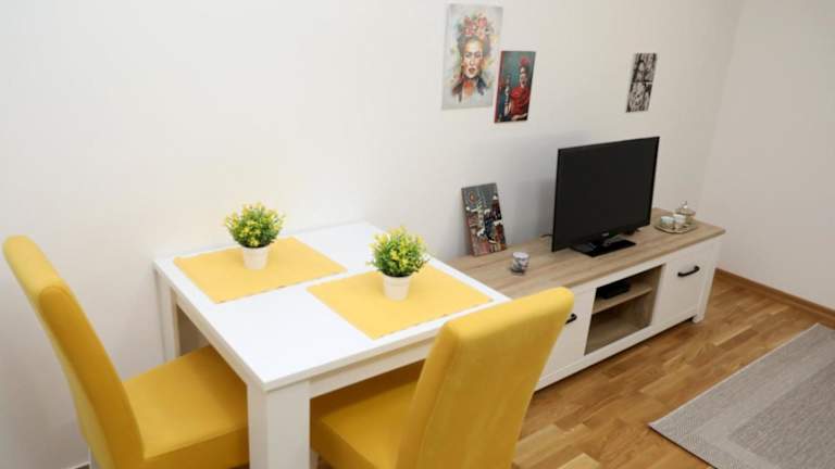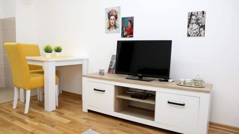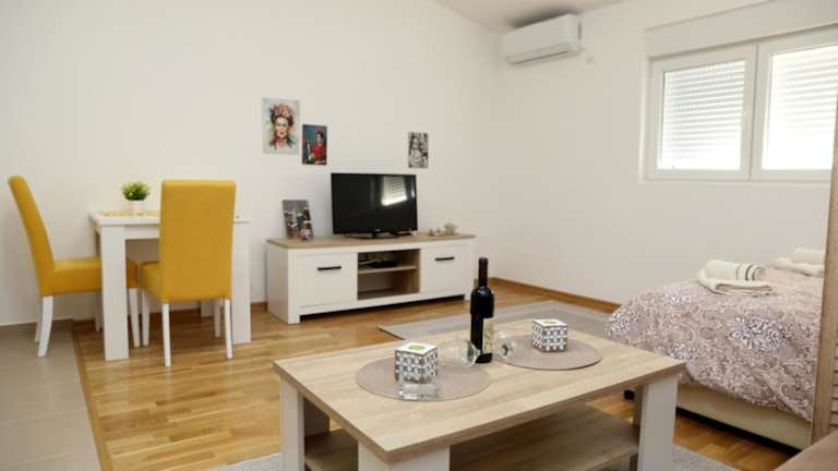 Apartman Frida bietet eine heimelige Atmosphäre mit Klimaanlage und einer voll ausgestatteten Küche.