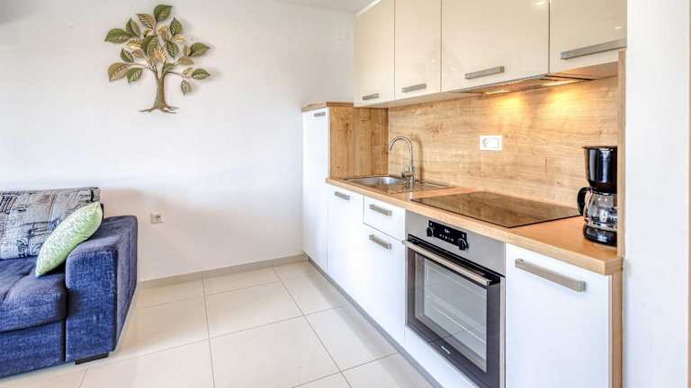 Die Ferienwohnung verfügt über zwei Schlafzimmer, ein Wohnzimmer und eine voll ausgestattete Küche mit Kühlschrank und Kaffeemaschine. Das Badezimmer ist mit einer Dusche ausgestattet. Zudem bietet die Wohnung einen Balkon und ist klimatisiert. Handtücher und Bettwäsche werden bereitgestellt und nach Richtlinien der örtlichen Behörden gewaschen.