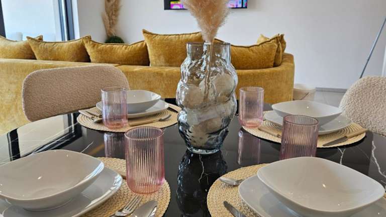 Die Ferienwohnung besteht aus zwei Schlafzimmern, einem Wohnzimmer und einer voll ausgestatteten Küche, die mit Kühlschrank und Wasserkocher ausgestattet ist. Es gibt zwei Badezimmer, die mit einer Dusche und einem Haartrockner eingerichtet sind. Handtücher und Bettwäsche werden bereitgestellt. Die Wohnung ist klimatisiert und bietet Zugang zu WLAN in allen Bereichen.