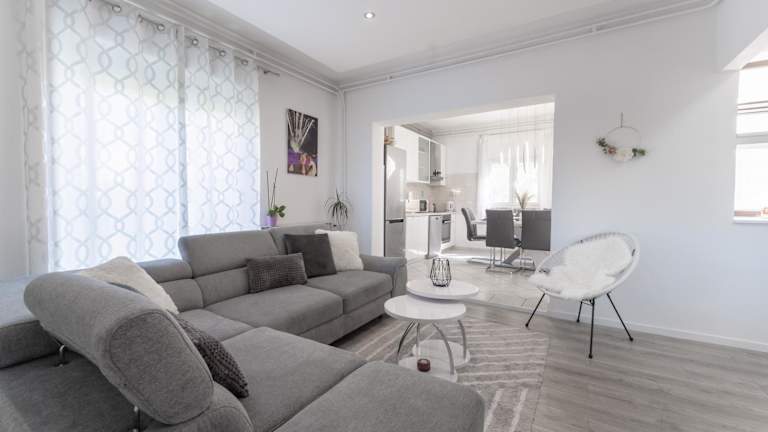 Die Ferienwohnung besteht aus 2 Schlafzimmern sowie einem Wohnzimmer. Sie verfügt über eine voll ausgestattete Küche mit Kühlschrank und Wasserkocher. Das moderne Badezimmer ist mit einer Dusche und kostenlosen Pflegeprodukten ausgestattet. Handtücher und Bettwäsche werden bereitgestellt, und die Unterkunft ist klimatisiert.