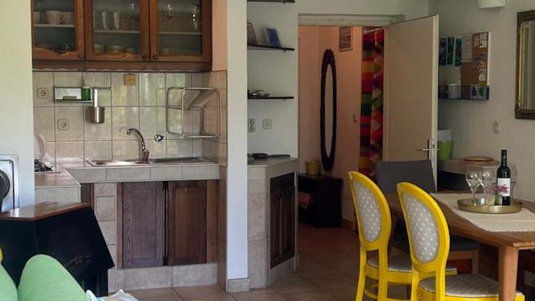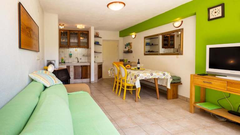 Die Ferienwohnung besteht aus einem Schlafzimmer, einem Wohnzimmer und einem Badezimmer mit Dusche und kostenlosen Pflegeprodukten. Klimaanlage sorgt für die nötige Bequemlichkeit. Handtücher und Bettwäsche werden bereitgestellt.