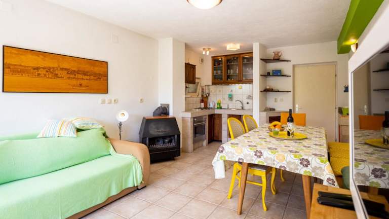 Die Ferienwohnung Maris bietet eine heimelige Atmosphäre mit wunderschönem Meerblick. Gästen stehen eine Terrasse sowie ein Veranda/Patioplatz zur Verfügung. Der Garten und die Grillmöglichkeiten tragen zur Entspannung bei. In der Unterkunft ist ein kostenloses Wifi verfügbar.