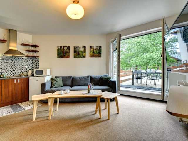 Die Ferienwohnung verfügt über ein Schlafzimmer, ein Wohnzimmer mit einem Flachbild-TV und eine gut ausgestattete Küchenzeile, die mit einem Kühlschrank und einer Mikrowelle ausgestattet ist. Das Badezimmer bietet eine Badewanne, und Handtücher sowie Bettwäsche werden bereitgestellt.