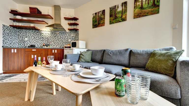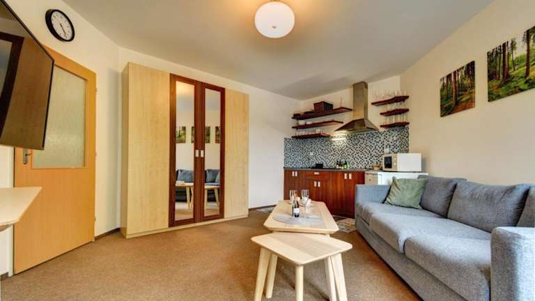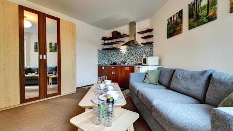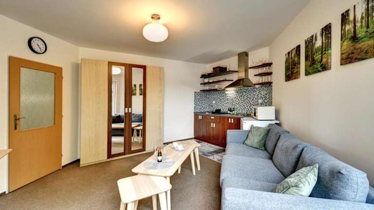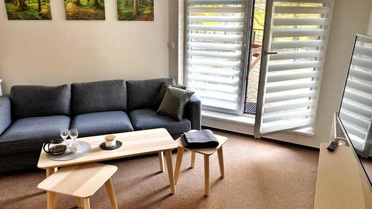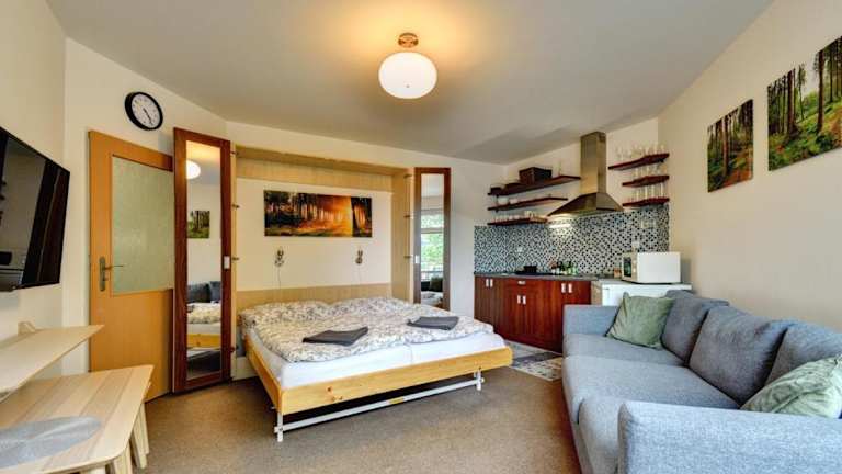 Apartmán Modrá hvězda ist eine Ferienwohnung, die über eine gut ausgestattete Küchenzeile, ein Schlafzimmer sowie ein Wohnzimmer verfügt. Zudem bietet die Unterkunft eine Sauna, einen Garten, eine Terrasse und kostenlosen Wifi-Zugang in der ganzen Wohnung.