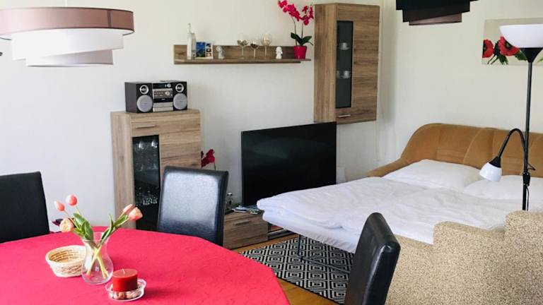 Das apartmán MONYA ist eine gemütliche Ferienwohnung, die über einen Garten verfügt. Die Unterkunft bietet kostenfreies WLAN und einen Blick auf den Garten. Ein kostenloser Privatparkplatz ist verfügbar. Die Unterkunft wird von einem privaten Gastgeber geführt, der verschiedene Sprachen spricht und gerne Informationen über die Umgebung bereitstellt. Es sind keine Junggesellen-/Junggesellinnenabschiede oder ähnliche Feierlichkeiten erlaubt.