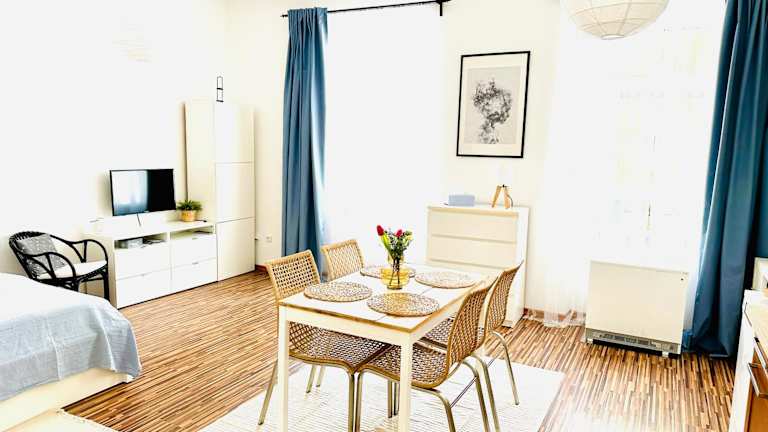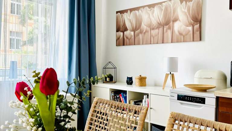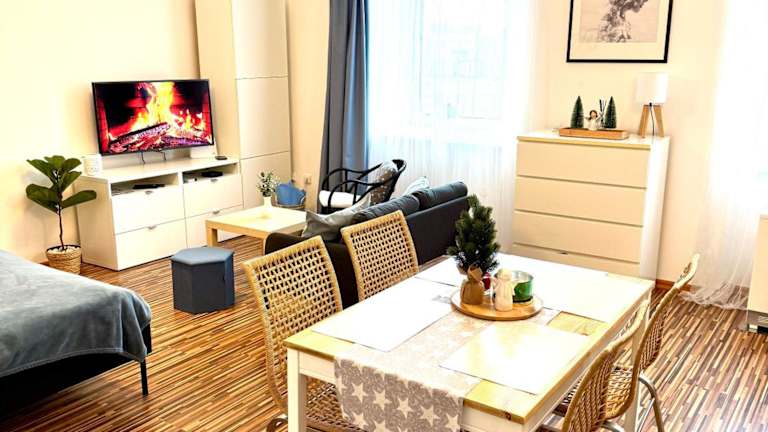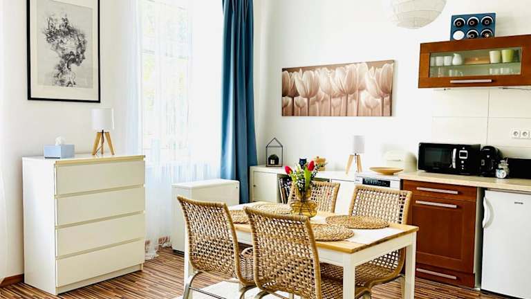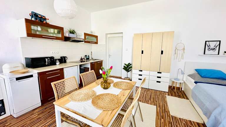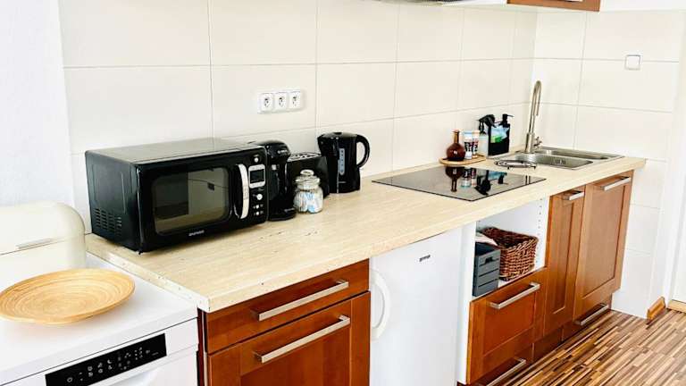 Die Ferienwohnung verfügt über ein Schlafzimmer, einen Flachbild-TV und eine voll ausgestattete Küche. In der Küche sind ein Geschirrspüler, eine Mikrowelle, eine Waschmaschine, eine Herdplatte sowie ein Toaster vorhanden. Handtücher und Bettwäsche werden den Gästen zur Verfügung gestellt.